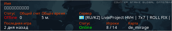 Последний раз был в сети 2 дня назад Игрок с таким ником замечен на 15 серверах