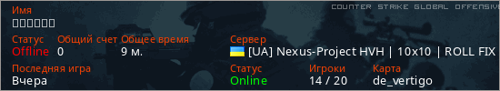 Играет на Counter Strike Global Offensive сервере. Страна: УкраинаПервый раз замечен 05:03 26.02.2026