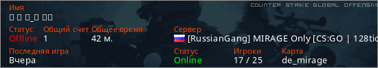 Играет на Counter Strike Global Offensive сервере. Страна: РоссияПервый раз замечен 10:56 21.08.2023