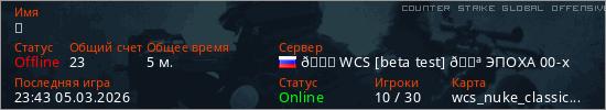 Играет на Counter Strike Global Offensive сервере. Страна: РоссияПервый раз замечен 23:36 05.03.2026