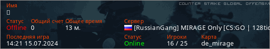 Играет на Counter Strike Global Offensive сервере. Страна: РоссияПервый раз замечен 21:37 08.06.2024
