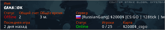 Играет на Counter Strike Global Offensive сервере. Страна: РоссияПервый раз замечен 20:03 22.03.2026
