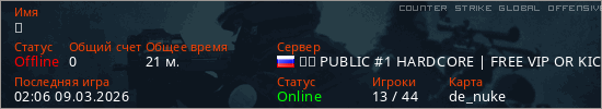 Играет на Counter Strike Global Offensive сервере. Страна: РоссияПервый раз замечен 03:30 07.02.2025