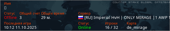 Играет на Counter Strike Global Offensive сервере. Страна: РоссияПервый раз замечен 03:14 13.08.2025