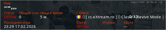 Играет на Counter Strike 1.6 сервере. Страна: РумынияПервый раз замечен 22:46 17.02.2026