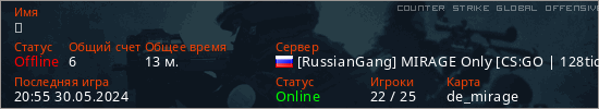 Играет на Counter Strike Global Offensive сервере. Страна: РоссияПервый раз замечен 11:55 29.05.2024
