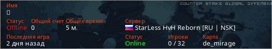 Играет на Counter Strike Global Offensive сервере. Страна: РоссияПервый раз замечен 10:54 11.03.2026