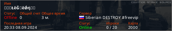 Играет на Counter Strike Source сервере. Страна: РоссияПервый раз замечен 20:33 08.09.2024