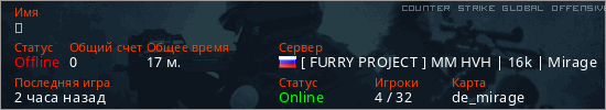 Последний раз был в сети Час назад Игрок с таким ником замечен на 15 серверах