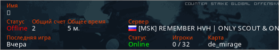 Играет на Counter Strike Global Offensive сервере. Страна: РоссияПервый раз замечен 17:07 09.12.2025