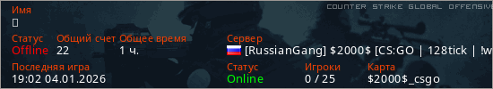 Играет на Counter Strike Global Offensive сервере. Страна: РоссияПервый раз замечен 22:58 12.11.2023