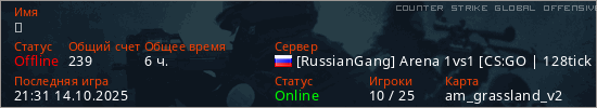 Играет на Counter Strike Global Offensive сервере. Страна: РоссияПервый раз замечен 03:15 28.08.2023