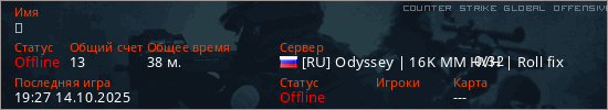 Играет на Counter Strike Global Offensive сервере. Страна: РоссияПервый раз замечен 01:09 14.04.2025