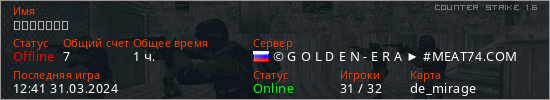 Играет на Counter Strike 1.6 сервере. Страна: РоссияПервый раз замечен 16:21 25.03.2024