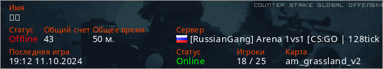 Играет на Counter Strike Global Offensive сервере. Страна: РоссияПервый раз замечен 13:57 01.10.2024