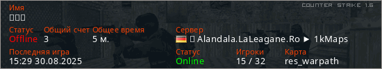 Играет на Counter Strike 1.6 сервере. Страна: ГерманияПервый раз замечен 15:16 30.08.2025