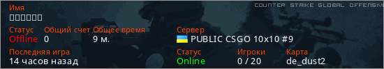 Играет на Counter Strike Global Offensive сервере. Страна: УкраинаПервый раз замечен 12:29 06.03.2026
