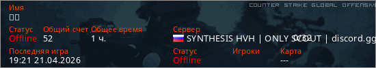 Играет на Counter Strike Global Offensive сервере. Страна: РоссияПервый раз замечен 16:29 13.04.2026