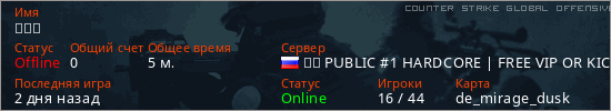 Играет на Counter Strike Global Offensive сервере. Страна: РоссияПервый раз замечен 00:59 08.03.2026