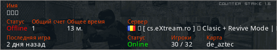 Играет на Counter Strike 1.6 сервере. Страна: РумынияПервый раз замечен 12:23 21.12.2025