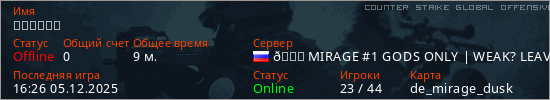Играет на Counter Strike Global Offensive сервере. Страна: РоссияПервый раз замечен 11:20 04.11.2024
