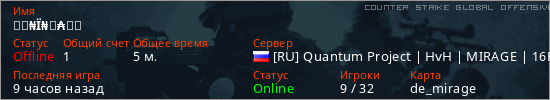 Играет на Counter Strike Global Offensive сервере. Страна: РоссияПервый раз замечен 07:50 08.04.2026
