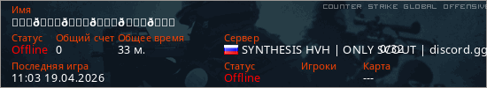 Играет на Counter Strike Global Offensive сервере. Страна: РоссияПервый раз замечен 14:08 18.04.2026