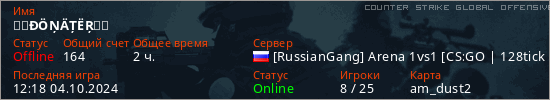 Играет на Counter Strike Global Offensive сервере. Страна: РоссияПервый раз замечен 13:52 25.05.2024