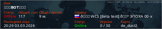 Играет на Counter Strike Global Offensive сервере. Страна: РоссияПервый раз замечен 23:09 25.02.2026