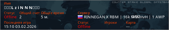 Играет на Counter Strike Global Offensive сервере. Страна: РоссияПервый раз замечен 15:02 03.02.2026