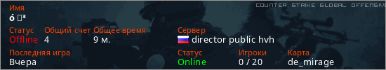 Играет на Counter Strike Global Offensive сервере. Страна: РоссияПервый раз замечен 18:54 07.04.2026
