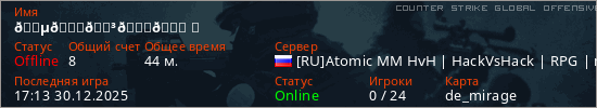 Играет на Counter Strike Global Offensive сервере. Страна: РоссияПервый раз замечен 11:32 26.12.2025