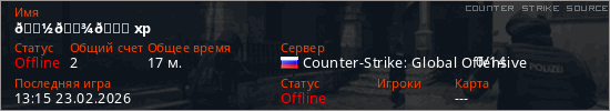 Играет на Counter Strike Source сервере. Страна: РоссияПервый раз замечен 22:56 31.01.2026