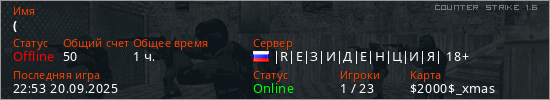 Последний раз был в сети 22:53 20.09.2025 Игрок с таким ником замечен на 42 серверах