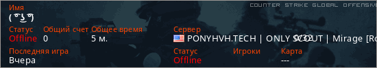 Играет на Counter Strike Global Offensive сервере. Страна: СШАПервый раз замечен 12:05 11.04.2026