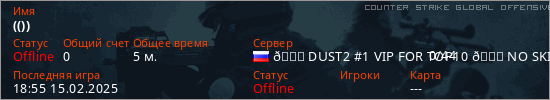 Играет на Counter Strike Global Offensive сервере. Страна: РоссияПервый раз замечен 18:49 15.02.2025