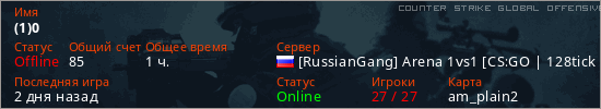 Играет на Counter Strike Global Offensive сервере. Страна: РоссияПервый раз замечен 20:25 22.08.2023
