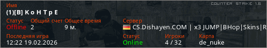 Играет на Counter Strike 1.6 сервере. Страна: ГерманияПервый раз замечен 11:29 19.02.2026