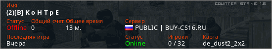 Играет на Counter Strike 1.6 сервере. Страна: РоссияПервый раз замечен 21:09 08.03.2026
