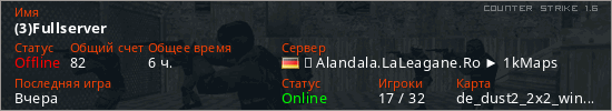 Последний раз был в сети Вчера Игрок с таким ником замечен на 7 серверах