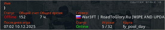 Последний раз был в сети 07:02 10.12.2025 Игрок с таким ником замечен на 51 сервере