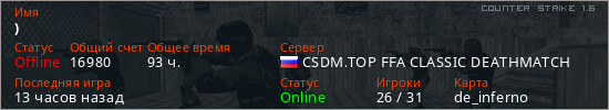 Последний раз был в сети 12 часов назад Игрок с таким ником замечен на 51 сервере