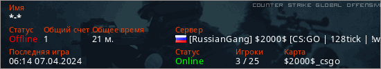 Играет на Counter Strike Global Offensive сервере. Страна: РоссияПервый раз замечен 20:07 05.04.2024