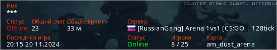Играет на Counter Strike Global Offensive сервере. Страна: РоссияПервый раз замечен 21:23 30.07.2024