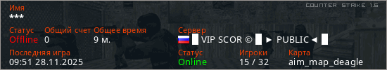 Играет на Counter Strike 1.6 сервере. Страна: РоссияПервый раз замечен 23:37 04.11.2025