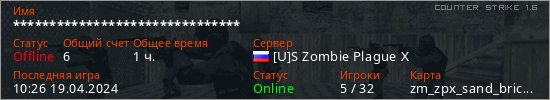 Играет на Counter Strike 1.6 сервере. Страна: РоссияПервый раз замечен 20:08 25.05.2021
