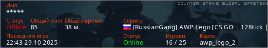 Играет на Counter Strike Global Offensive сервере. Страна: РоссияПервый раз замечен 22:44 22.09.2024