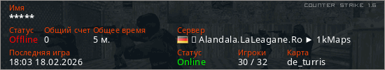 Играет на Counter Strike 1.6 сервере. Страна: ГерманияПервый раз замечен 18:01 18.02.2026