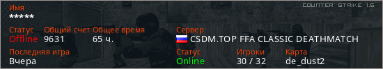 Последний раз был в сети Вчера Игрок с таким ником замечен на 34 серверах