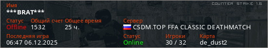 Играет на Counter Strike 1.6 сервере. Страна: РоссияПервый раз замечен 10:11 12.11.2019